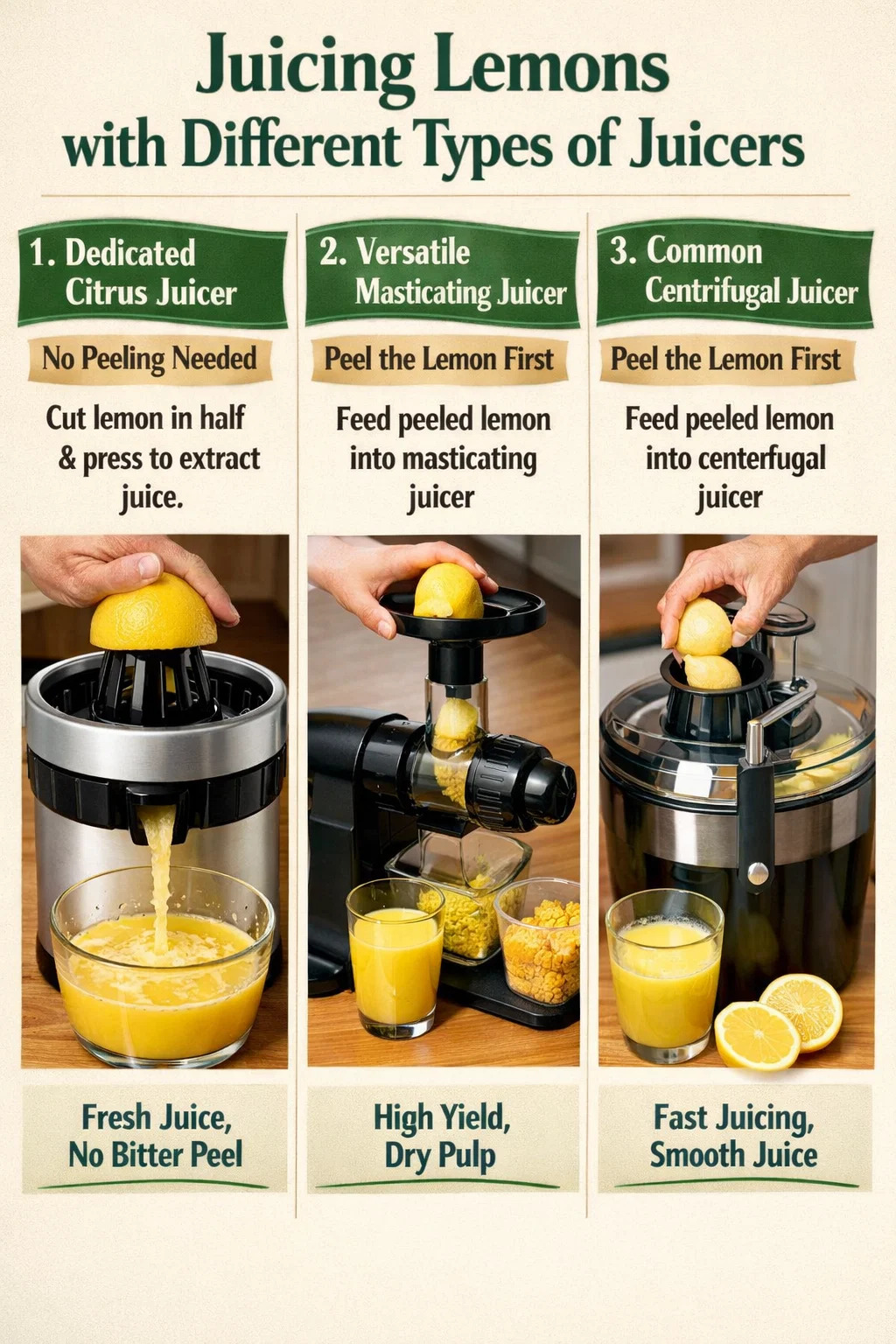 Výhody: Nemusíte sa obťažovať lúpaním tenkej, lepkavej citrónovej kôry. Hrebene stroja vytiahnu všetku kyslú šťavu z dužiny, zatiaľ čo horká kôra a biela dreň zostanú pozadu, výsledkom čoho bude mimoriadne osviežujúca a aromatická šťava.