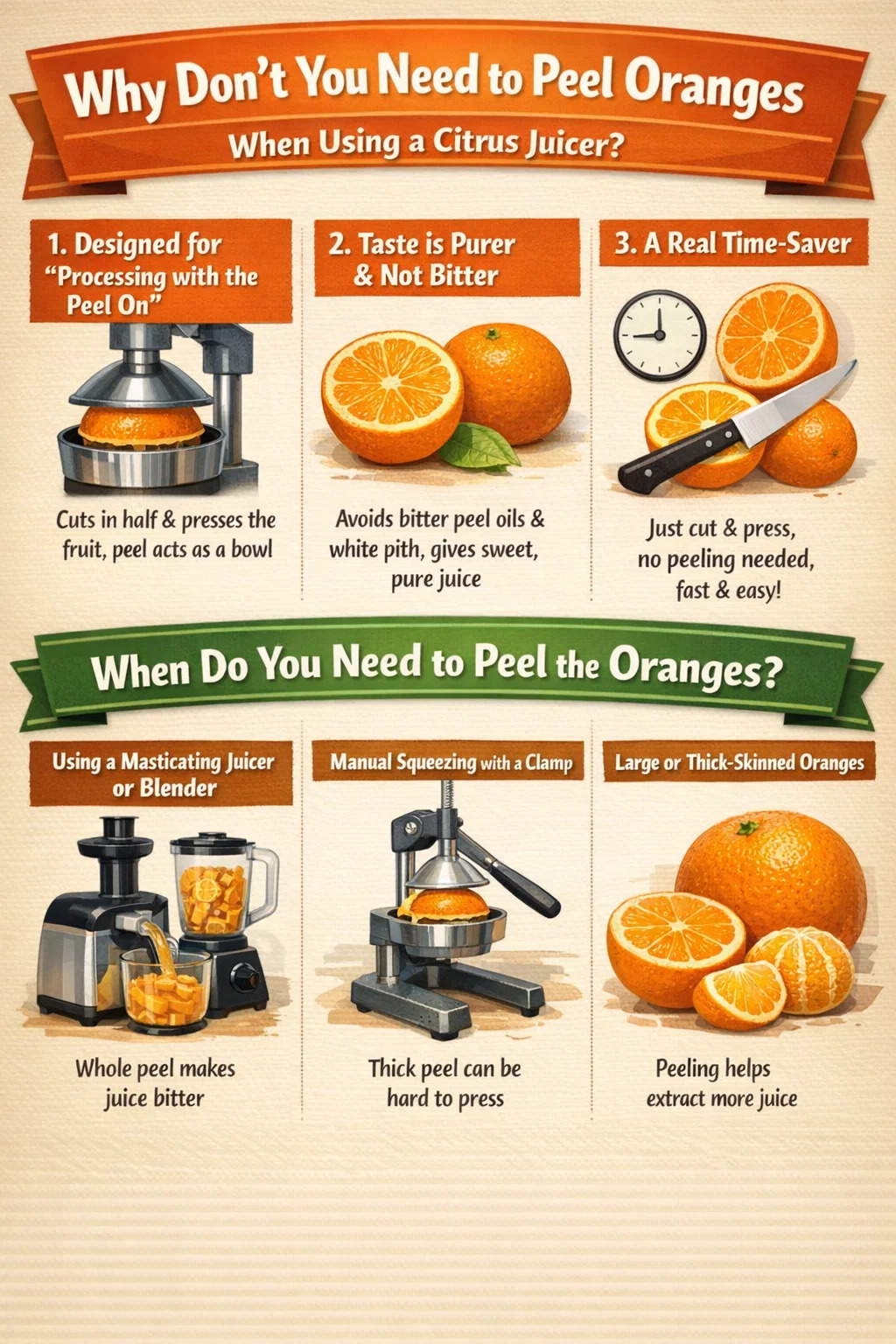Aj keď pri použití špeciálneho odšťavovača citrusov nemusíte pomaranče šúpať, budete ich musieť ošúpať v nasledujúcich situáciách: