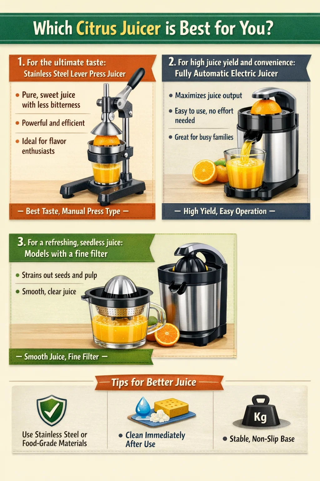 Ak chcete extrahovať čerstvú a chuťovo čistú šťavu, vyberte si tú správnu citrusovač je rozhodujúca. Na trhu je veľa strojov, ale ktorý z nich je „najlepší“, skutočne závisí od vašich požiadaviek na „lahodnosť“ a „textúru“.